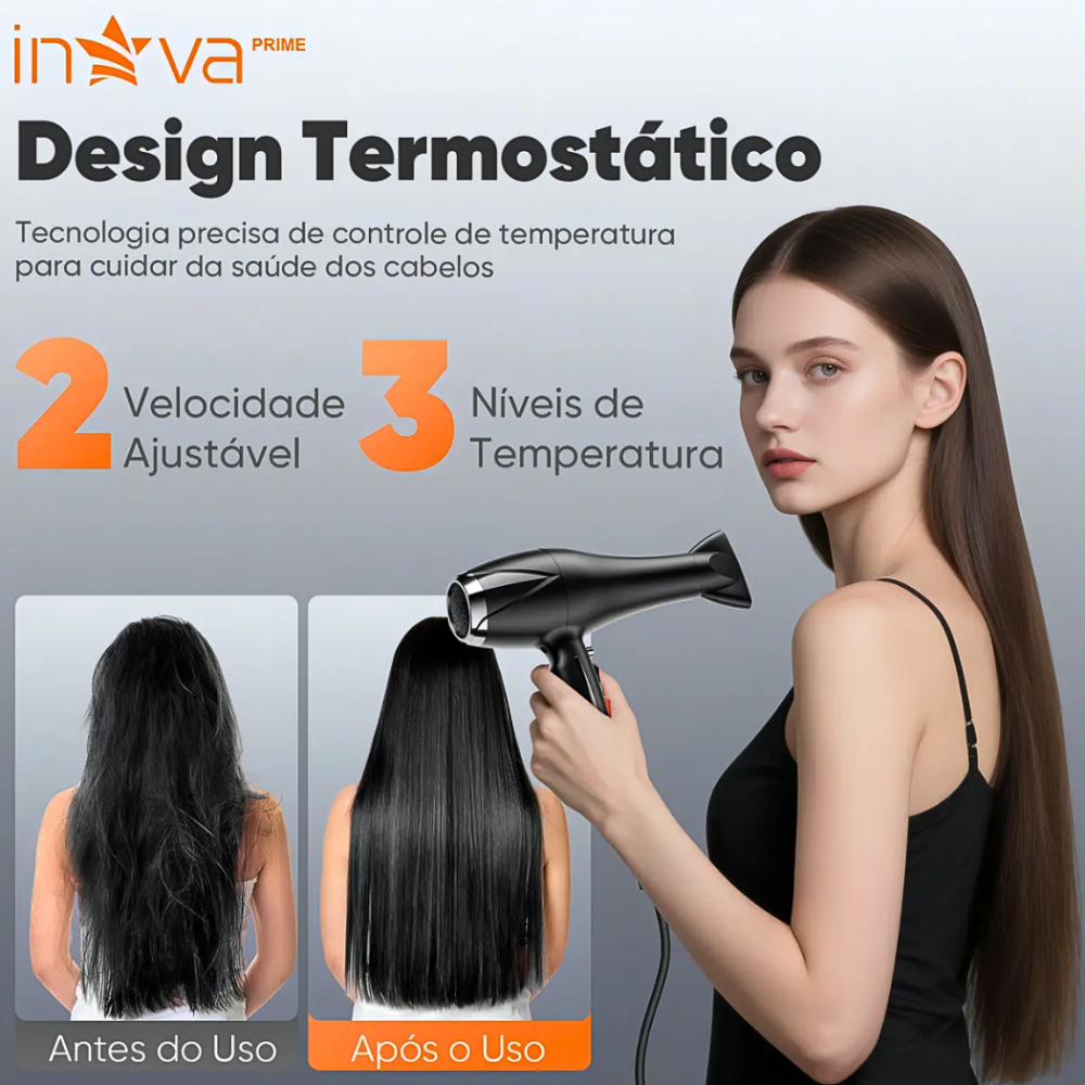 Tenha resultados de salão no conforto da sua casa! O Secador Profissional Inova KV-12698-1 foi desenvolvido para quem busca eficiência, rapidez e cuidado com os fios.