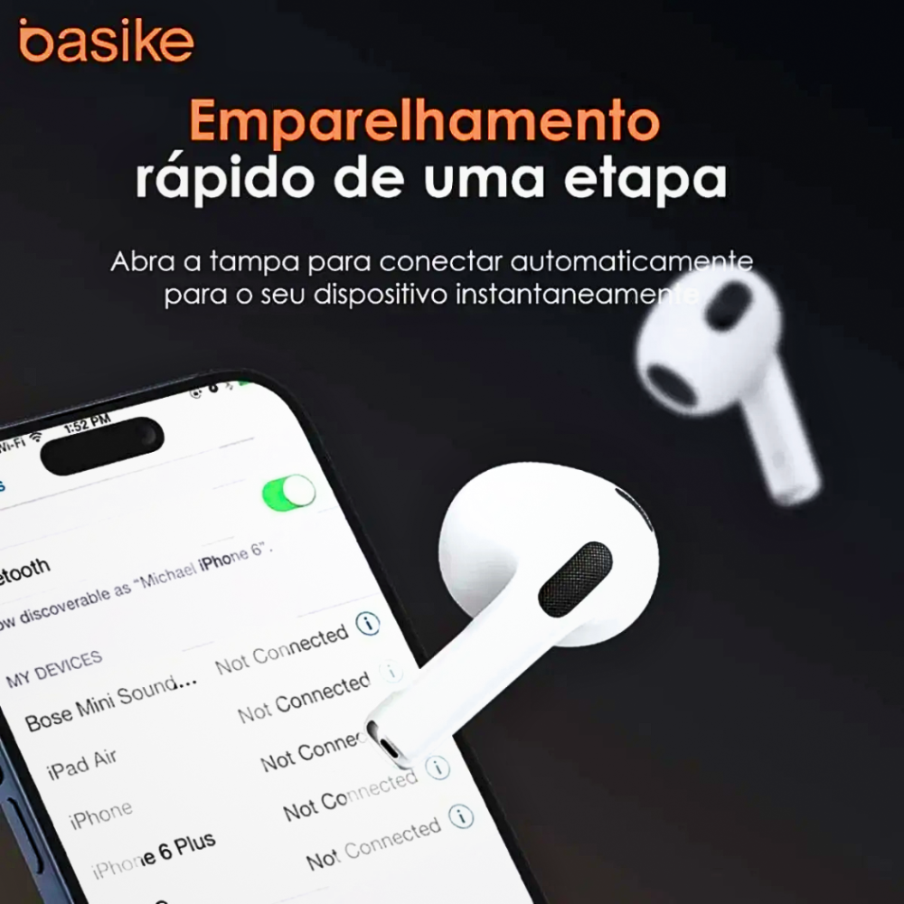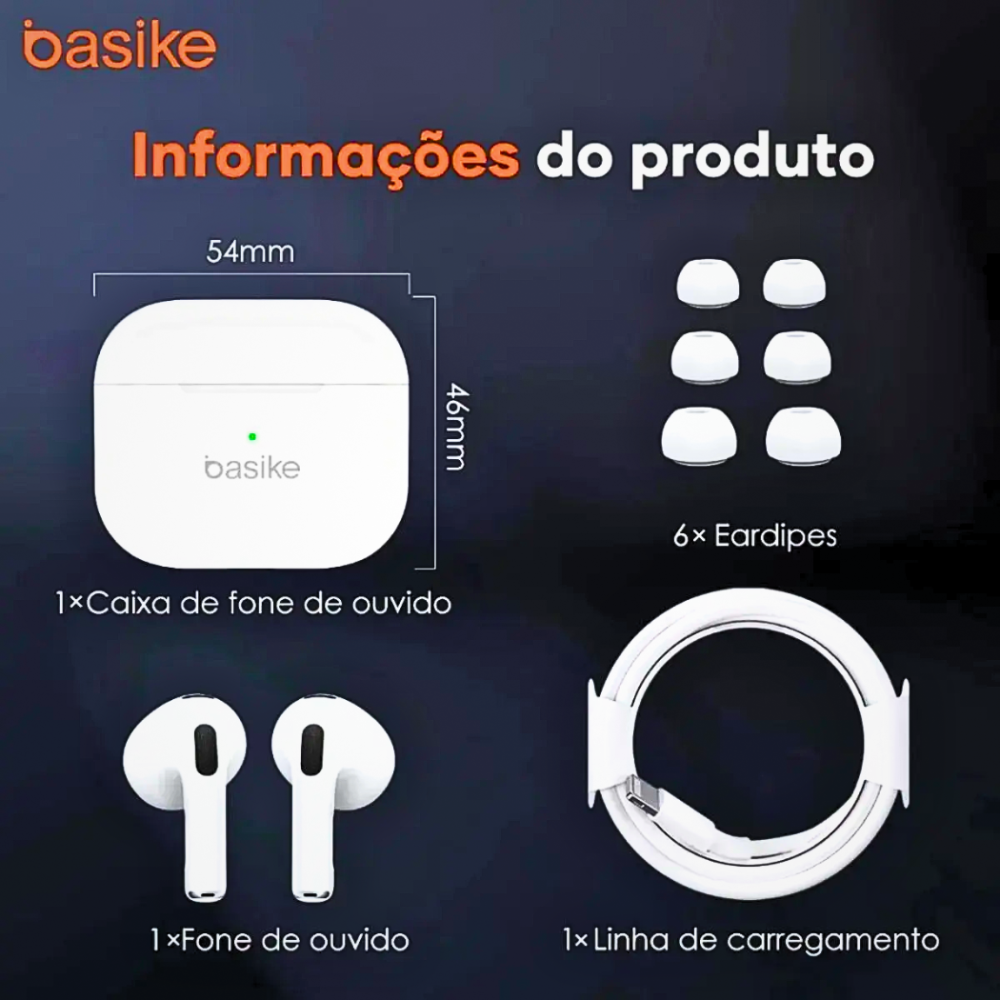 Fone De Ouvido Bluetooth 5.4 TWS Premium Case de Carregamento Basike BA-FON173