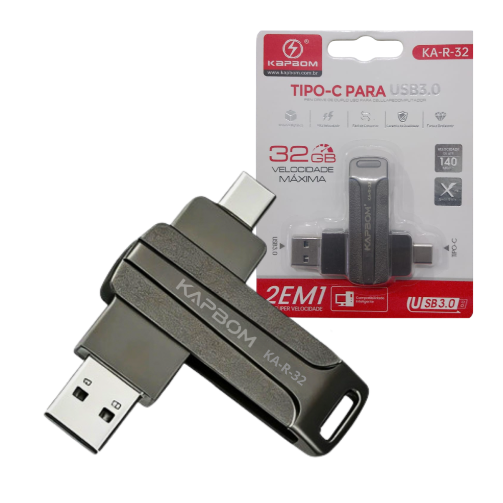 O Pendrive KA-R-32 é a solução definitiva para quem busca velocidade, versatilidade e alta capacidade para armazenar bibliotecas inteiras de fotos, vídeos em 4K e arquivos pesados.