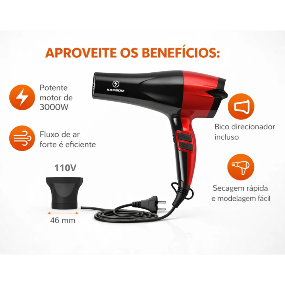Secador de Cabelo Profissional 3000w Premium 110V Kapbom KA-0922