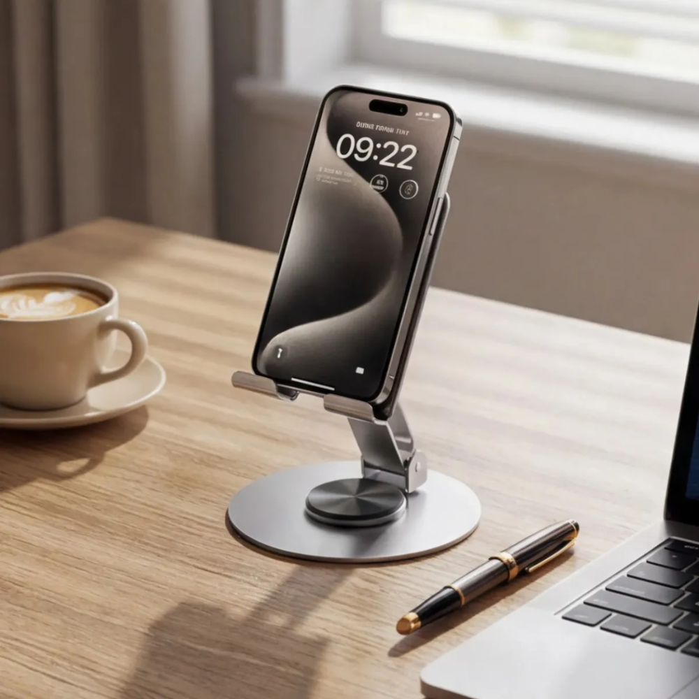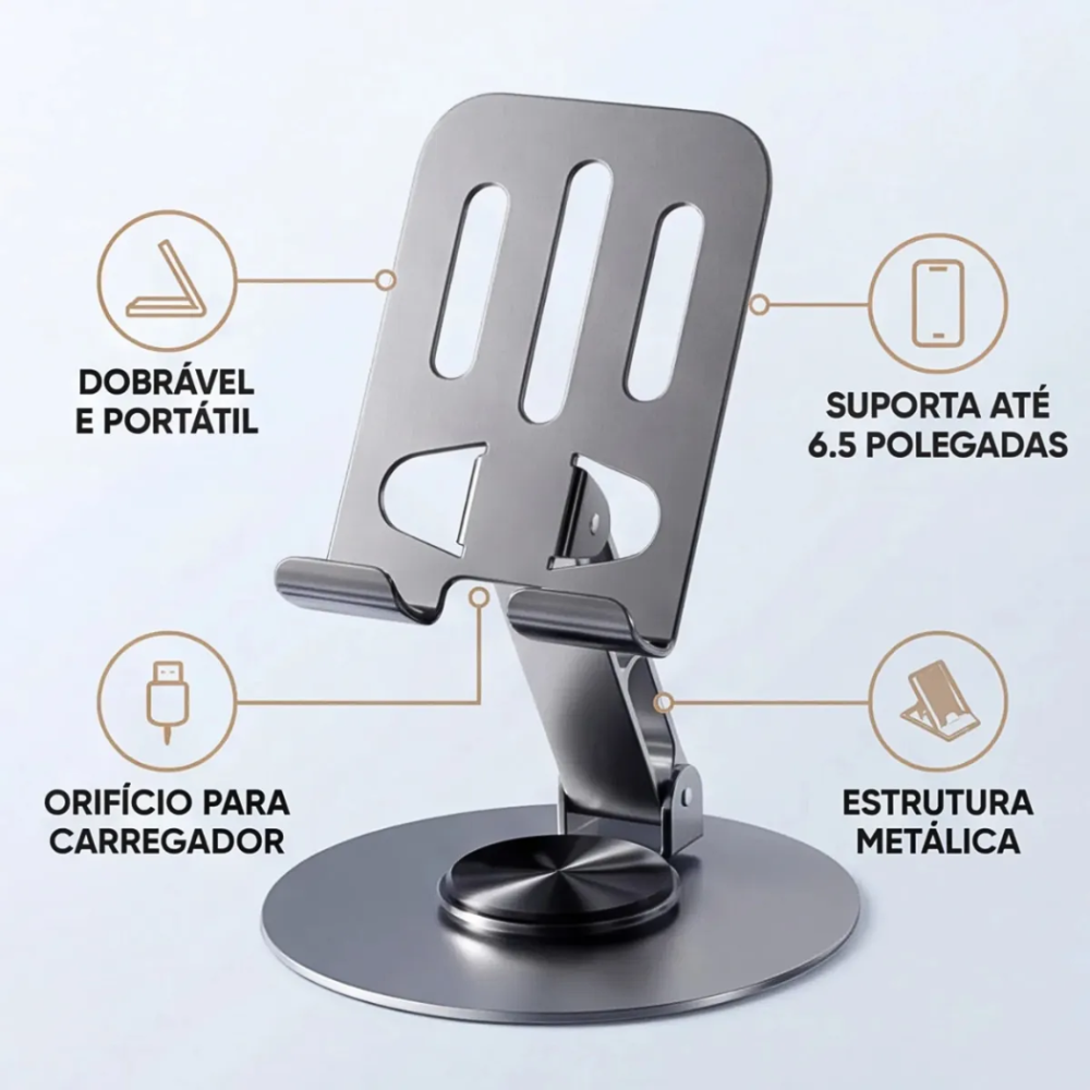 Suporte De Mesa Para Celular Dobrável Metal Rotação 360º