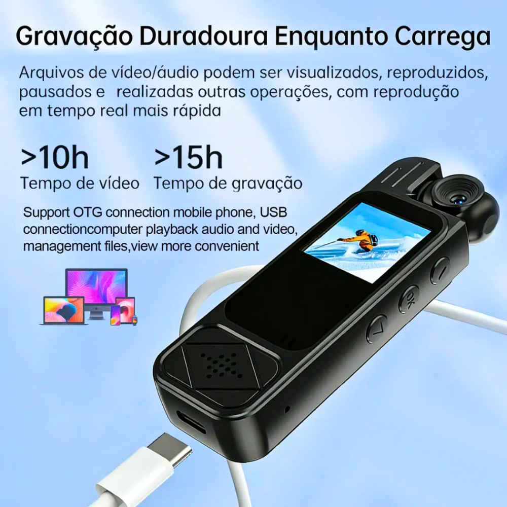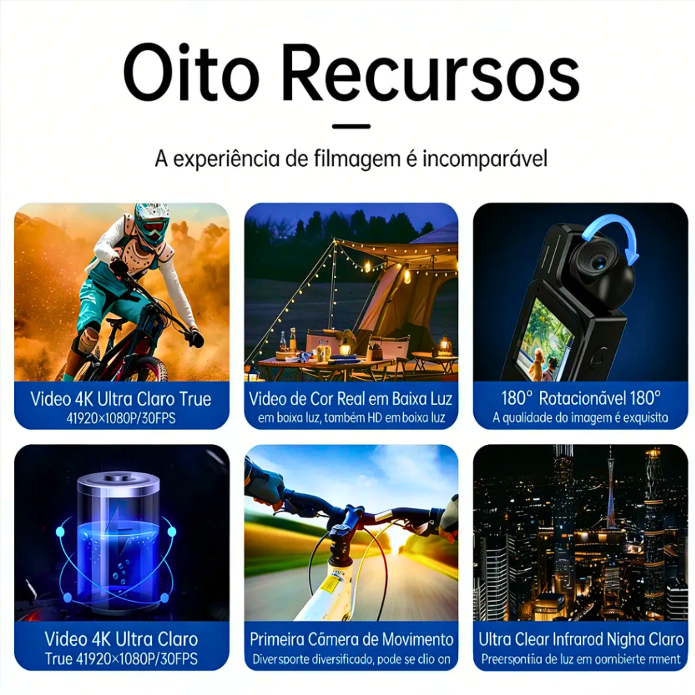 Compacta, resistente e versátil, ela captura vídeos em Full HD e fotos de alta resolução, mesmo em condições desafiadoras.