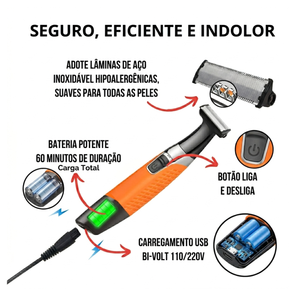 -Tecnologia SkinComfort: Lâminas que não cortam a pele, ideal para áreas sensíveis como axilas e regiões íntimas.