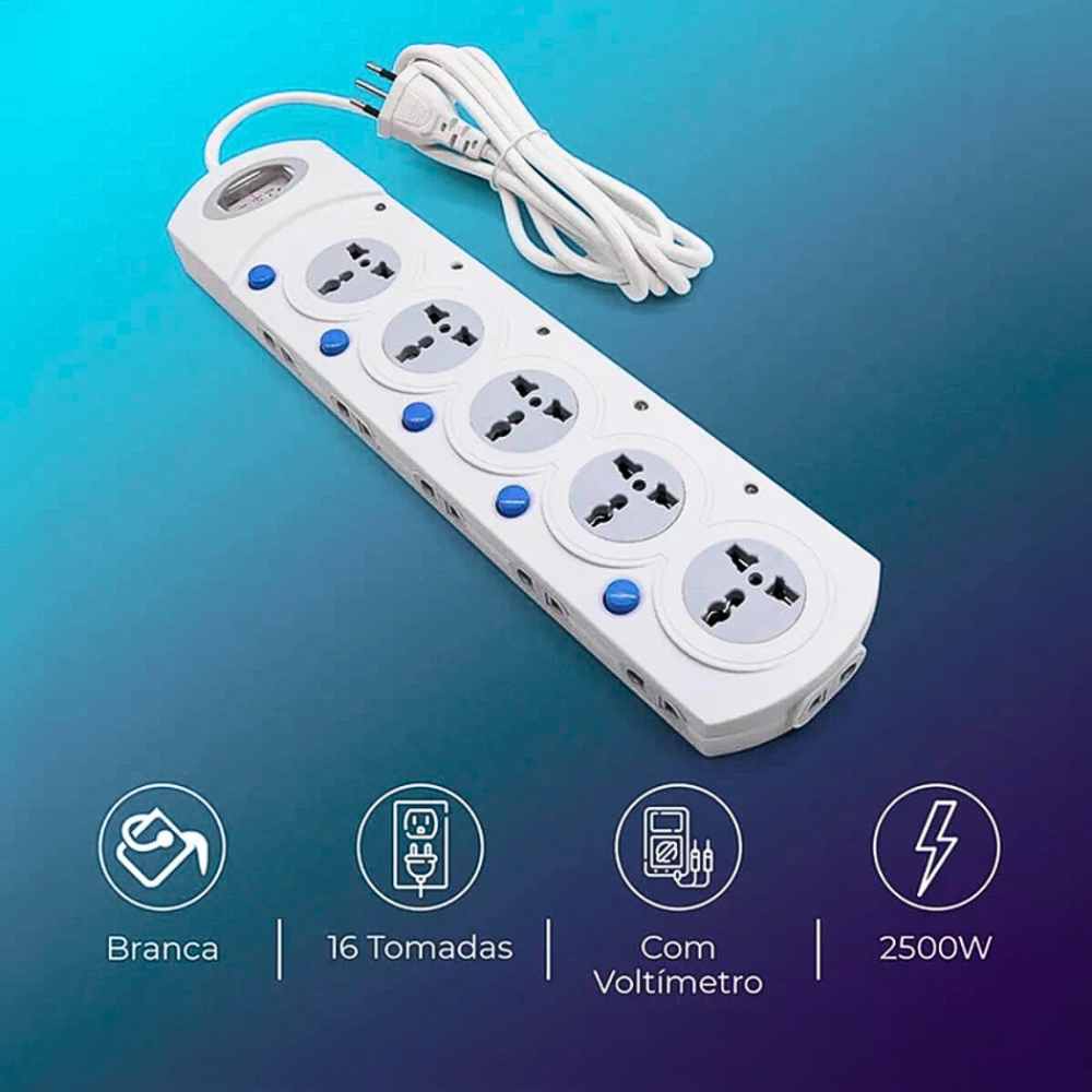 Equipado com 15 tomadas e um voltímetro digital integrado, ele permite o monitoramento em tempo real da tensão da sua rede elétrica, prevenindo danos por oscilações.