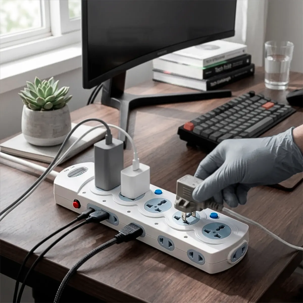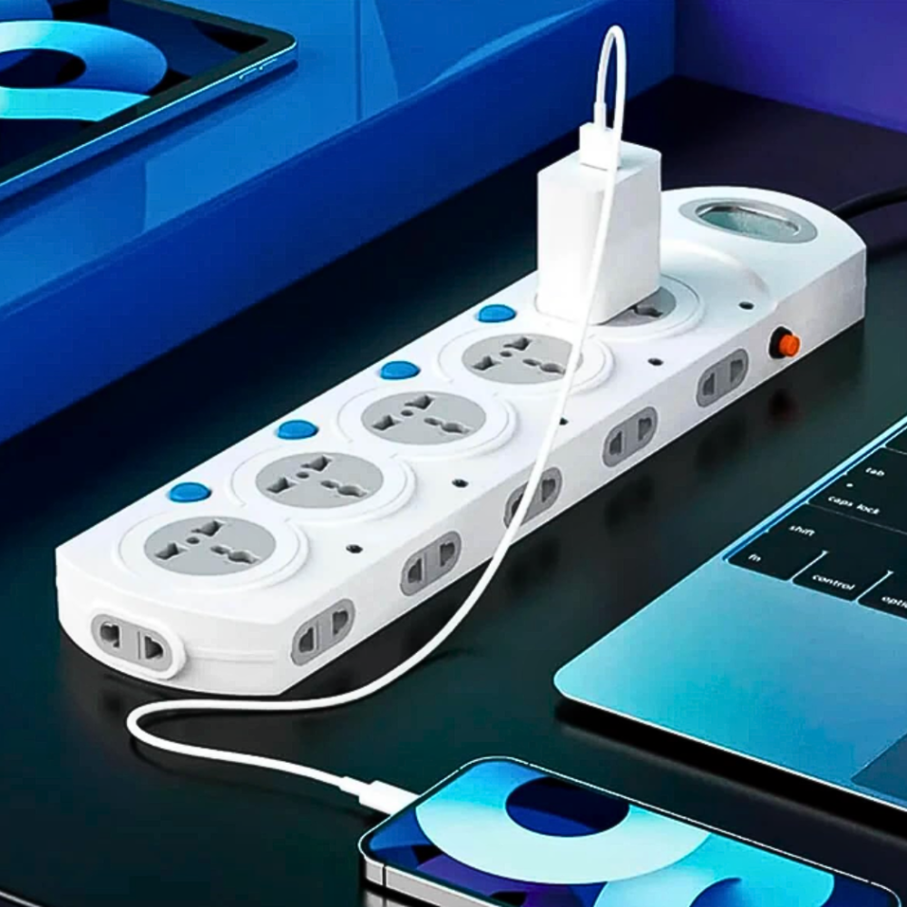 -Design Funcional: Tomadas distribuídas de forma a facilitar o encaixe de diferentes tamanhos de plugues e fontes.