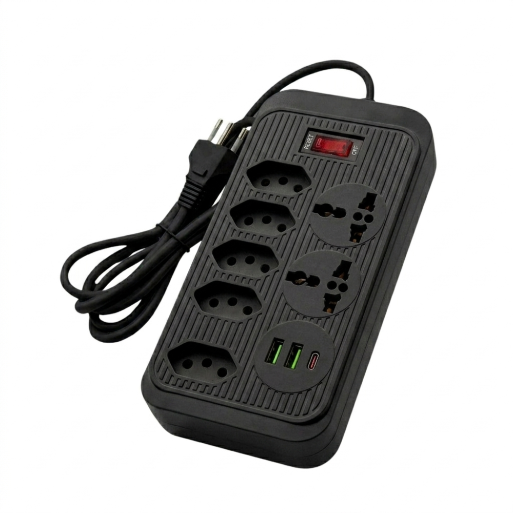 Filtro de Linha com 7 Tomadas 2 USB e TIPO -C Bivolt de 3 Metros