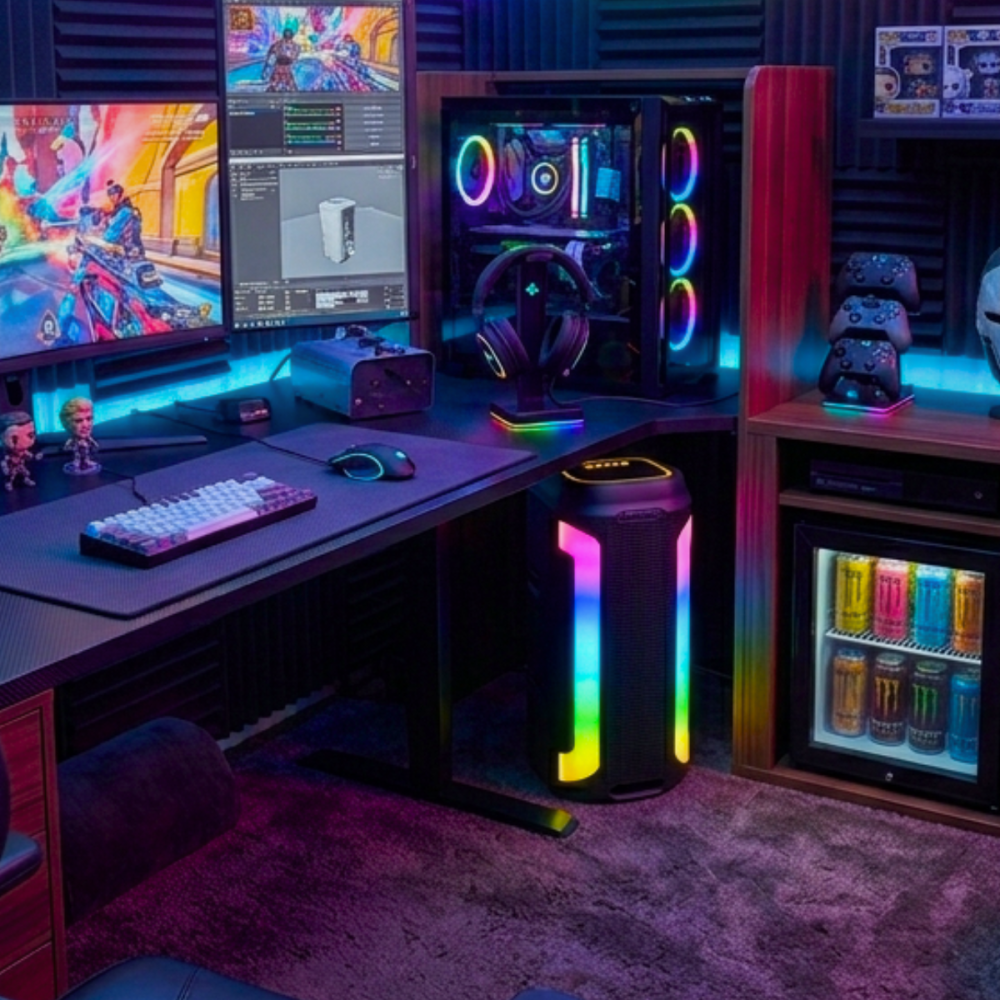 A caixa de som Inova MD-12271 é a escolha ideal para quem busca potência sonora aliada a um design moderno com iluminação dinâmica. Equipada com dois alto-falantes de 4 polegadas, ela entrega um som envolvente e efeitos visuais que transformam qualquer ambiente.